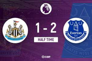 半场-布兰斯维特破门贝托建功波普黄油手送礼 纽卡1-2落后埃弗顿