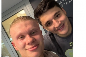 体育资讯3月1日讯 曼城后卫胡桑诺夫生日在2月29日,队友哈兰德也在社媒晒出与胡桑诺夫的合照,配文写道:“祝你第5个生日快乐。”