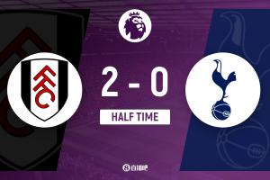 上半场补时4分钟,富勒姆2-0热刺。
