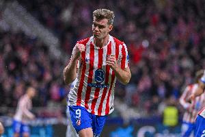 体育资讯3月8日讯 西甲第27轮,马竞主场迎战皇家社会,比赛第5分钟,吉梅内斯助攻瑟尔洛特进球。
