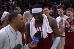 赛后,队友鲍威尔客串了一把记者,问到:“当听到自己的名字与张伯伦(100分)、科比(81分)比肩,你什么感受?”