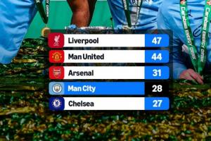 下一篇: 外媒列英格兰球队历史夺冠榜:曼城28冠超蓝军独占第4,距枪手3冠