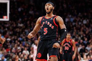 上半场,猛龙球员奎克利表现出色,进攻端手感火热,首节就拿到11分,在17分钟的时间里,投篮6中5,三分球4中4,罚球4中4,砍下18分2篮板3助攻1抢断的数据,正负值+12。