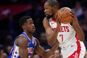 而火箭9个投篮里5个是杜兰特出手,于是火箭本季加时赛来到1胜5负。