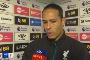 体育资讯01月25日讯 利物浦2-3遭伯恩茅斯绝杀,队长范戴克本场比赛失误送礼+破门,赛后他和主帅斯洛特都将第一个丢球时的失误归咎于风的因素。