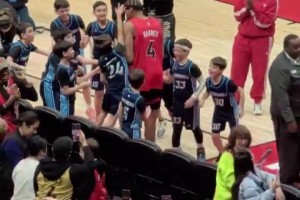 下一篇: 太搞猛龙小球迷互动时跳起打了巴恩斯脑袋一巴掌,后者都懵了
